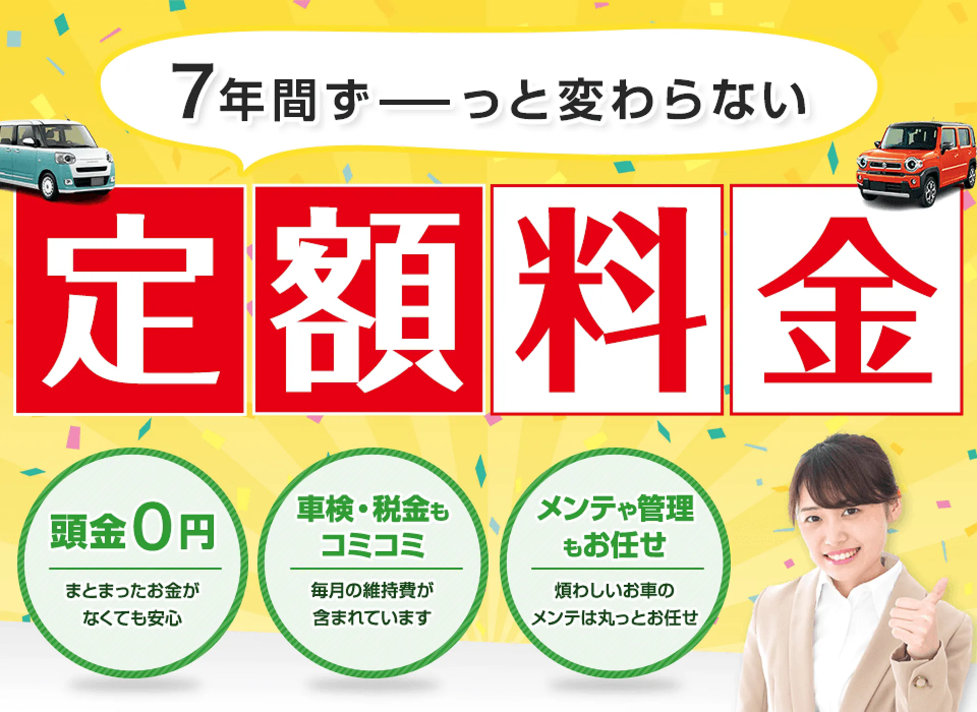 7年間の車の維持費である「自動車税」「自賠責保険料」「車検代」「メンテナンス」などが月々の支払いに含まれており、急な出費はほとんどございません。
