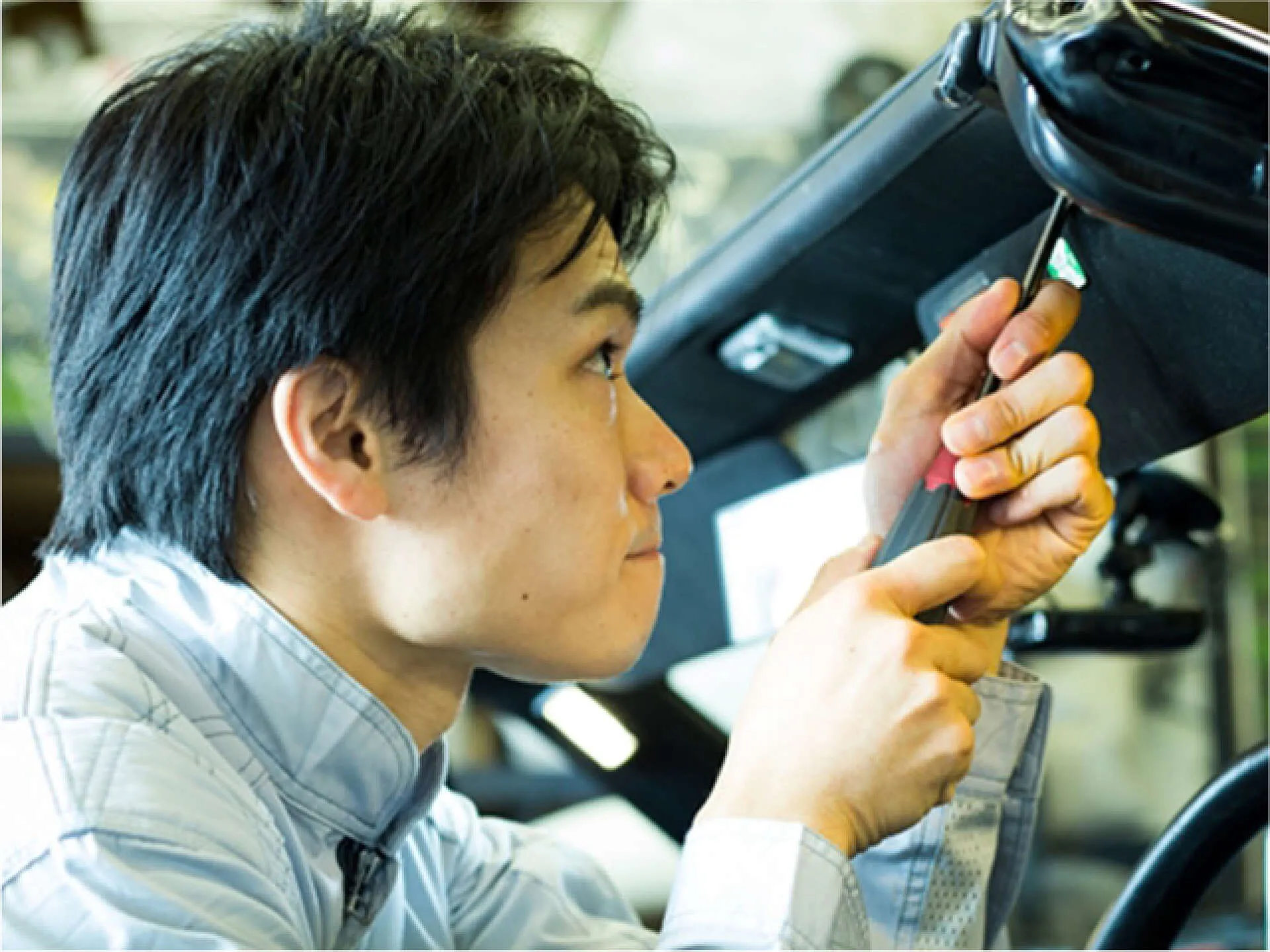 自動車整備は専門的な知識や経験が必要となるので、ご応募を検討されている方の中にも、不安な気持ちになっている方がいらっしゃるかと思います。当店では、頼りになる先輩がサポートしますので、社内でしっかりとステップアップできる仕組みを設けています。